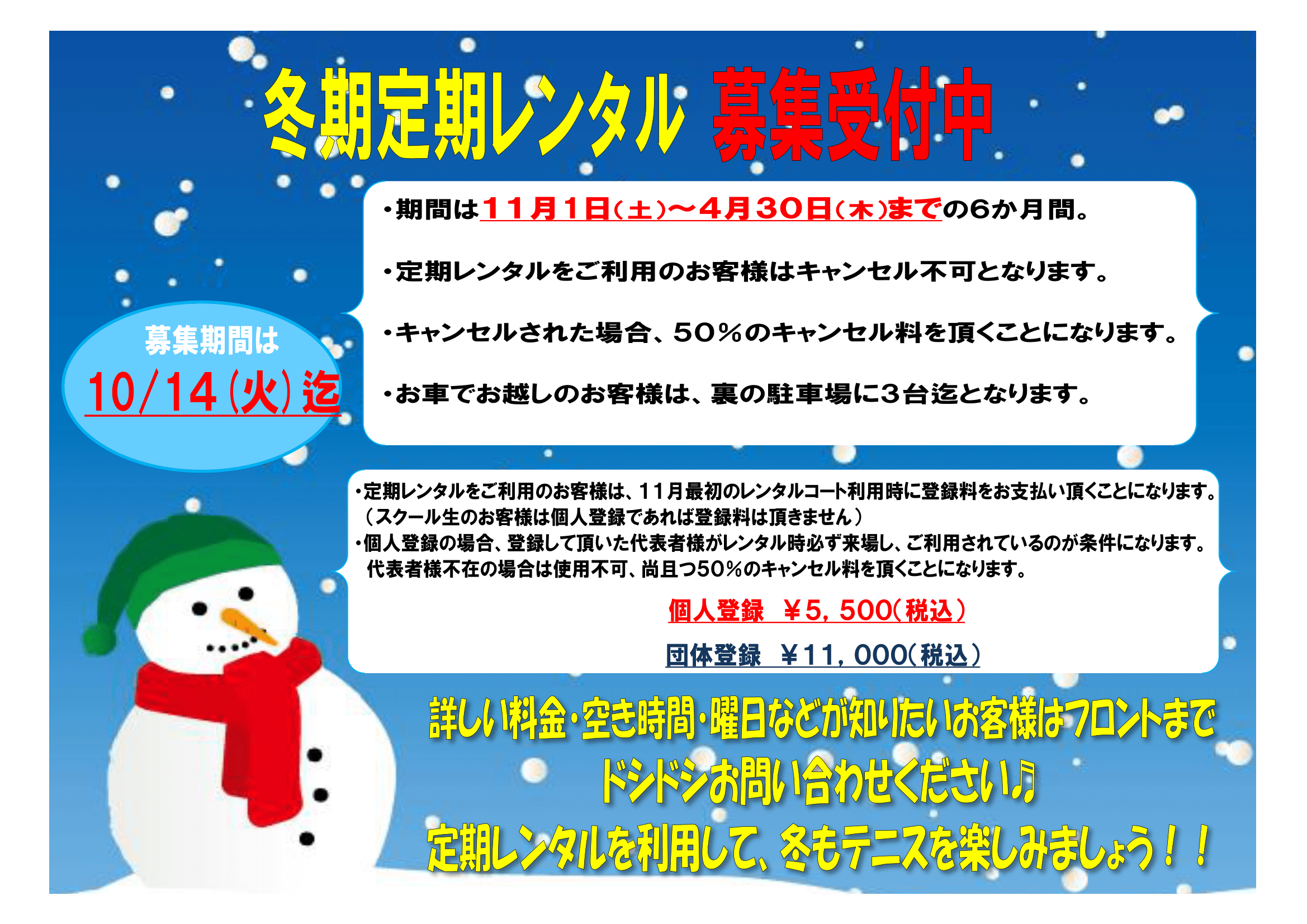 冬季定期レンタルの募集を開始いたします!